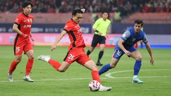 让人有些意外的是,开场后海港队便取得闪电进球,仅仅第5分钟,申花队门前一片混战,特谢拉禁区内处理球不够果断被断,刘若钒得球后一脚低射,直接洞穿了昔日队友鲍亚雄的大门。这粒进球可能有一些运气成分,但也正来源于穆斯卡特一直所强调的高位压迫,直接就地反抢造成特谢拉的失误。
