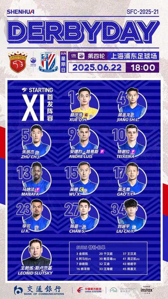 首发阵容上,申花方面相比8天前客场1比3不敌深圳的比赛有几处调整,门将薛庆浩,蒋圣龙复出和朱辰杰搭档中卫,两边马纳法、陈晋一;特谢拉也复出打钻石顶端,身后是李可、高天意和吴曦,双前锋路易斯搭档刘诚宇。