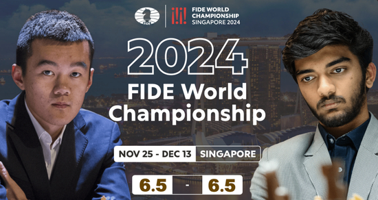 此次世界冠军赛将于11月25日至12月14日在新加坡圣淘沙名胜世界进行,中国棋手丁立人将与印度棋手古克什展开14轮的巅峰对决。比赛采用经典慢棋赛制,每轮比赛北京时间17:00开始。比赛设置两个时限:第一时限每方120分钟走40步,第二时限每方30分钟包干,从第41步开始,每走一步加30秒。如果14盘棋过后双方打成平手,将通过快棋加赛决出优胜者。比赛总奖金高达250万美元,同时这也是丁立人首次以世界冠军身份参加卫冕战!