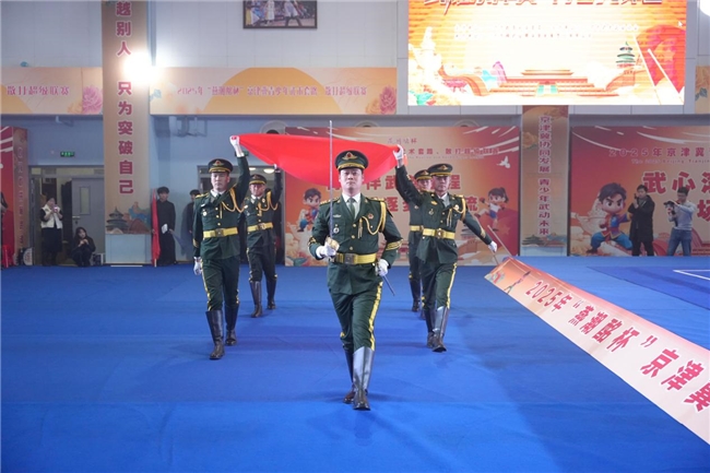 开幕式在三河市文化广场体育馆内隆重举行,“武耀京津冀,青春竞锋芒”的主题氛围尤为浓厚。天安门国旗护卫队的助阵环节在场馆内更显庄重肃穆,瞬间点燃全场热情;随后的文艺展演中,《旋风少年》在体育馆舞台上以利落动作展现“青春”活力,原创节目《武术哪吒》用灵动创意诠释“武耀”魅力,《武魂》则通过刚柔并济的演绎深化主题内涵,专业运动员与少儿表演者的精彩呈现,在体育馆的专业声场与灯光加持下,构成传统与活力交融的视觉盛宴。