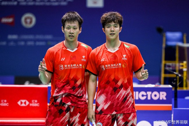 在一场国羽德比中,陈柏阳/刘毅用时34分钟,连胜两局,以2个21-14战胜队友谢浩南/曾维瀚,晋级正赛16强。