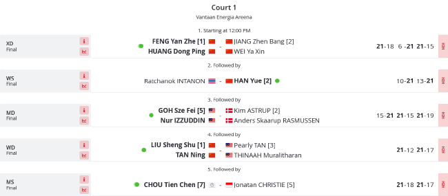 决赛日进行的是5个单项的决赛,其中,公开冠圣有国羽球员出战的赛国比赛共3场。