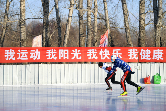 1月8日,市民在内蒙古自治区呼伦贝尔市扎兰屯市一处冰场体验滑冰。服务新华社记者贝赫摄