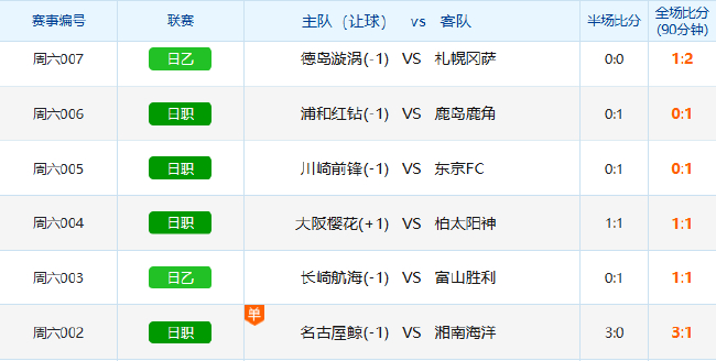 在刚刚结束的日职联第30轮比赛中,共打出5场首赔,末竞其中仅有名古屋主胜入选竞彩。彩日剩余5场比赛中,大阪樱花战平柏太阳神;广岛三箭、川崎前锋、京都不死鸟、浦和红钻均在主场0-1负于对手,连爆冷的比分都完全一致,而在这几支爆冷球队中,有5支均是目前的夺冠热门选手。